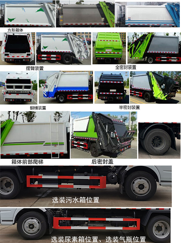 東風多利卡6方D7壓縮式垃圾車為使垃圾箱完全處于封閉狀態,在轉運途中不會污染環境,配備前后兩個污水收集箱。6-12方壓縮式垃圾車特別適用于農村環衛與城鄉結合部,社區的環衛建設。